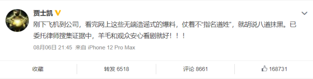 这件事越演越烈,网友和杨洋的粉丝也都炸开了锅,一个个展开了激烈的讨论,而当天晚上十点左右,杨洋的经纪人贾士凯便在微博上向造谣者公开宣战,称其已经委托好律师正在搜集证据,要还杨洋一个清白。