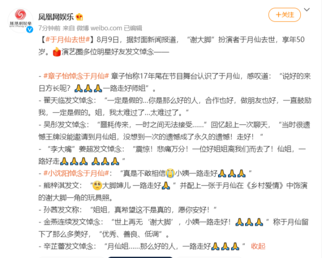 8月9日中午12时,一则于月仙去世的消息登上热搜榜,并瞬间占领榜一热搜位。据知情网友称: