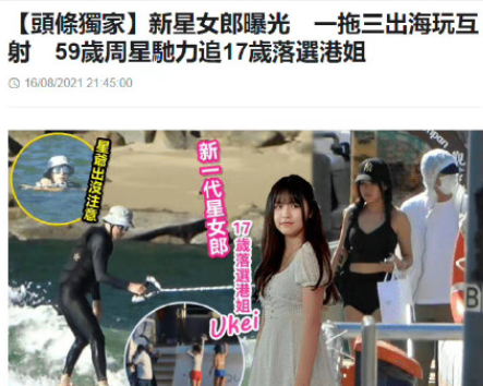 近日娱乐圈的瓜真是不少呀!59岁的星爷却被曝疑似有了新恋情。今天,周星驰和落选港姐张晓祺出海游玩的事情上了热搜,张晓祺才17岁,她和星爷的忘年恋是真的吗?