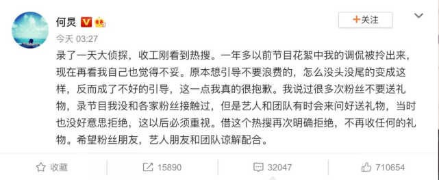 收礼事件曾让何炅等几位主持人处于风口浪尖,权威媒体都曾发声批送礼之风。何炅曾发声道歉,并表示不再收任何礼物。不过这件事还是对何老师的口碑产生了一定影响。快本是老牌综艺节目了,一些粉丝为了自家偶像送上了金条等贵重应援礼物。
