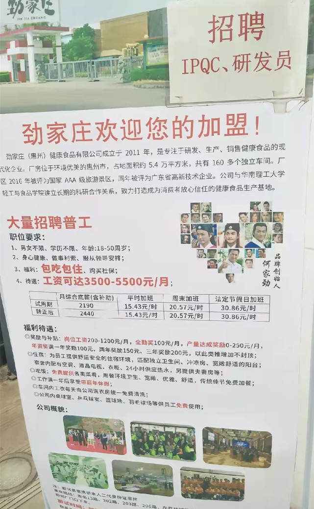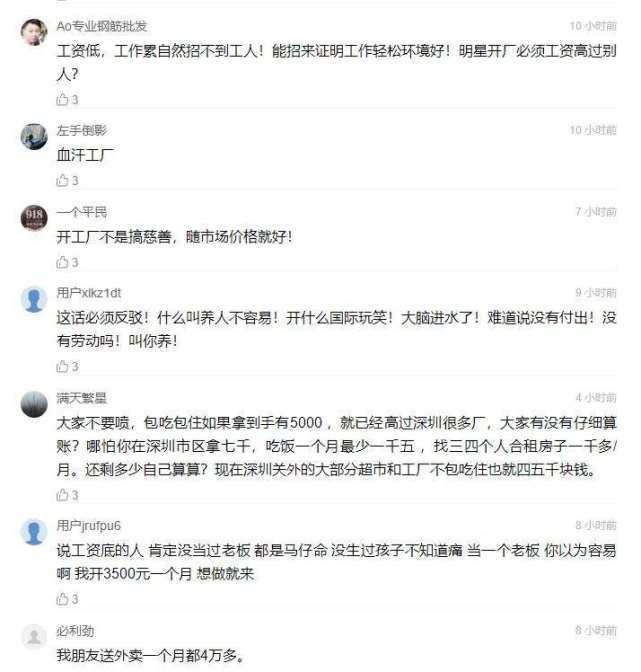 不过近日何家劲工厂的薪资问题遭到网友们的热议,早前有网友将何家劲工厂的招工图发到网上,不少网民看到后,都纷纷感到诧异。其他条件大家觉得和一般工厂没有很大的区别,只是3500元的薪酬让人有些无法接受。在不少人看来,何家劲作为一名艺人,给旗下员工开出的薪资未免过低,虽然有加班费,但是加起来也没有超出同行业的水平。