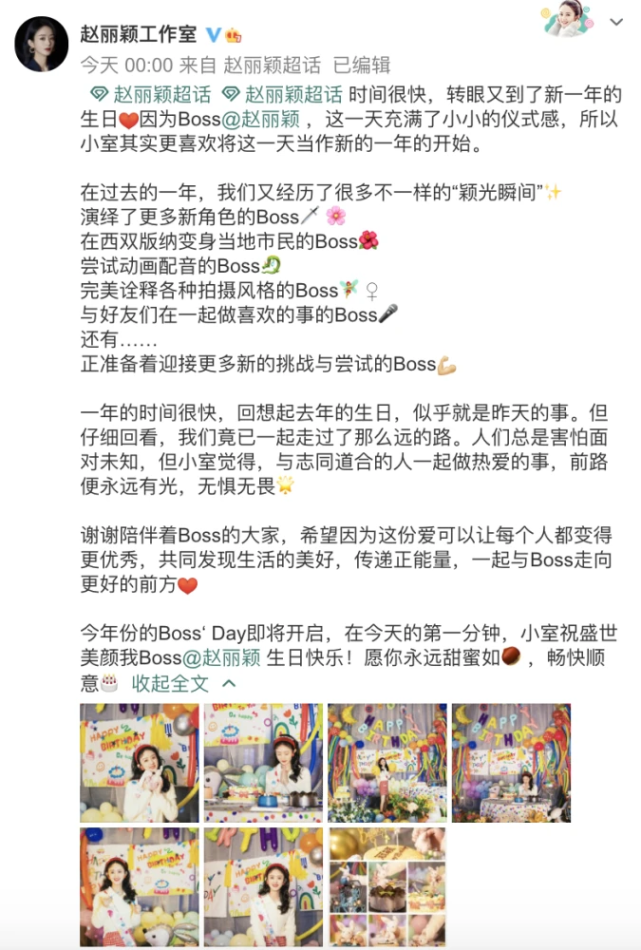 作为内娱85花的中坚力量,赵丽颖一直颇受观众的喜爱,近日,迎来其34岁生日,在生日当天,其工作室也是第一时间分享了老板庆生活动的喜悦。