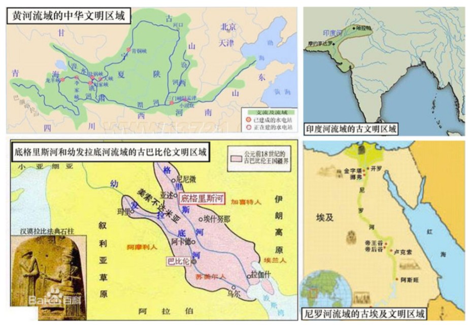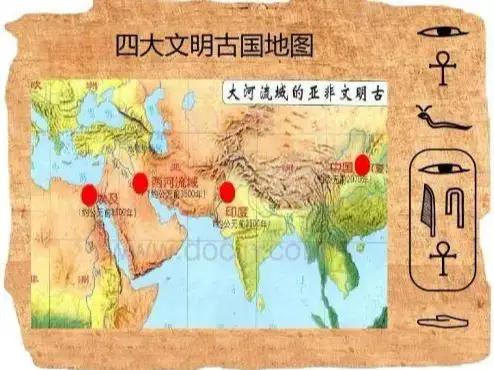 世界四大文明古国是指古代埃及、古巴比伦、古印度和中国,用地图表示如下: