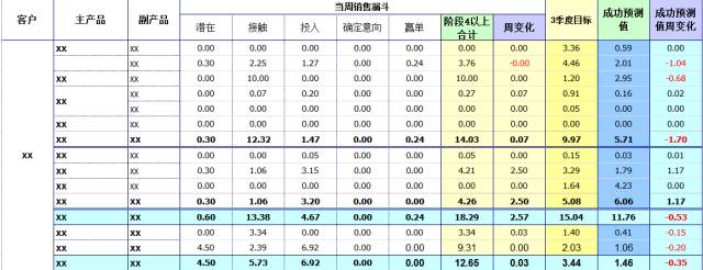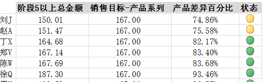 比如地域维度的销售人员主要负责按地区划分的销售片区,产品维度的销售人员主要负责自己手头负责的单类产品,而行业\领域维度的销售人员主要负责自己精通的行业或者领域中的企业客户。然后阶段4以上和阶段5以上的商机总金额一般是最为关注的指标。在案例中阶段4为“明确”,即已经明确了客户的购买意向,而阶段5为投入,既公司已经决定为了能够成功与客户成交,要投入一定的销售成本了。