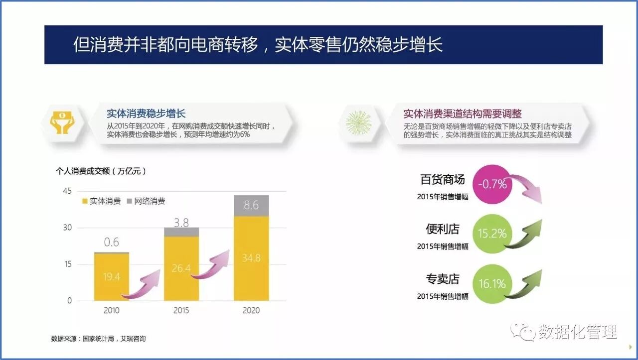 如下图,从消费者的个人消费成交额来看,实体消费还是在稳步增长的一个状态。再看右边,其实也有一些新兴的线下消费渠道,比如便利店或者是专卖店,在电商冲击比较明显的阶段也能保持着销售额年增15%以上的一个态势。