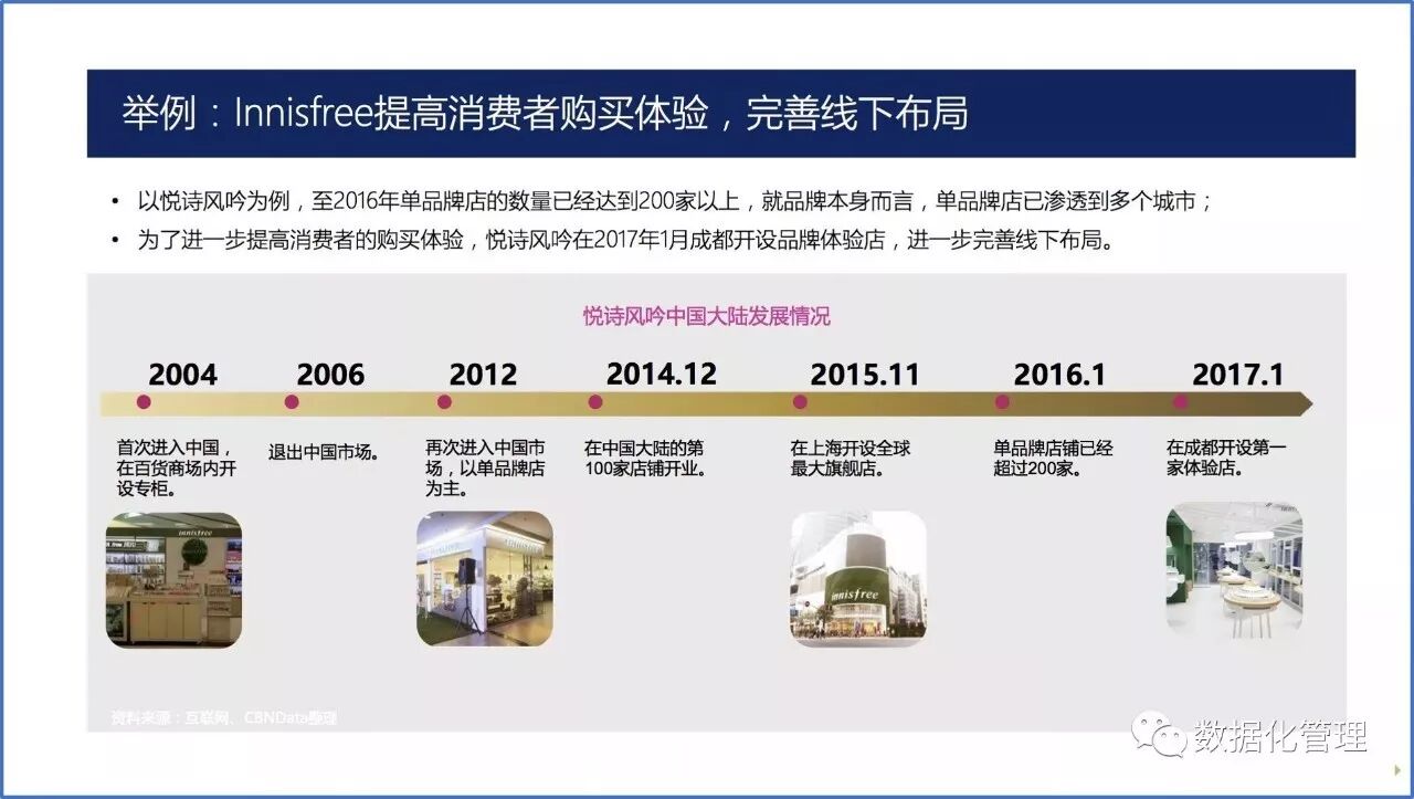 我们以Innisfree为例,它在2004年首次进入中国市场,在百货商场开设专柜。但是由于水土不服,2006年退出了中国市场。