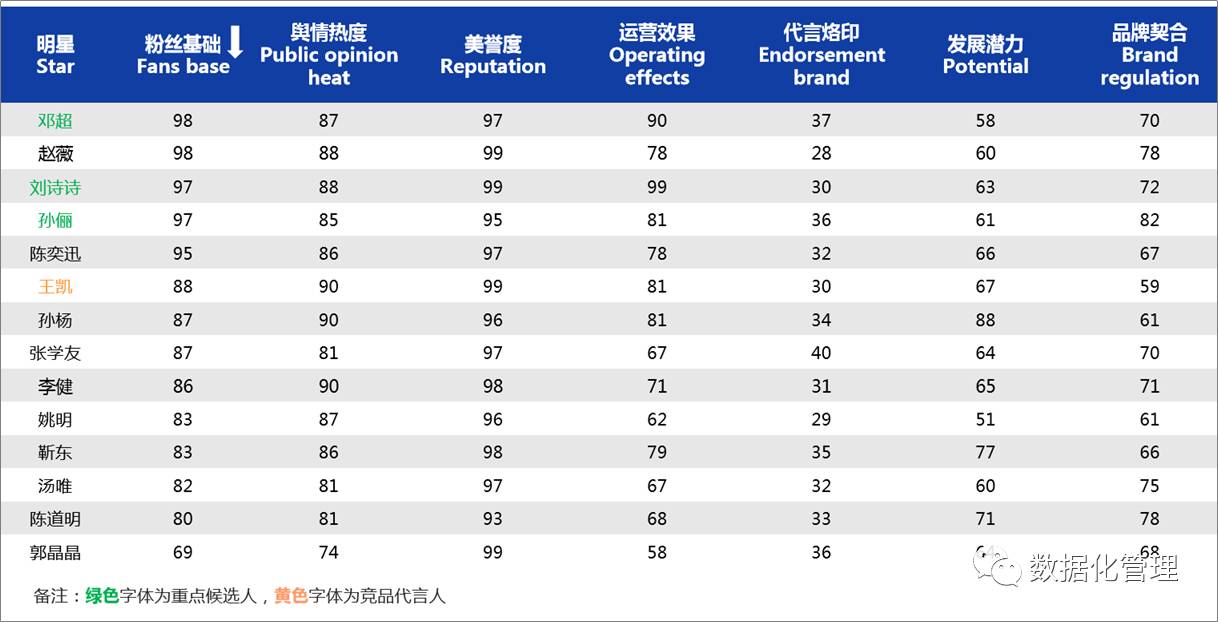 互联网的好处是明星或网红的一举一动都在互联网上曝光,这些数据经过整合后就是非常好的一手评估数据,这样的数据才是企业可以信赖的决策依据。我们来看一个数说雷达的优选代言人的案例。