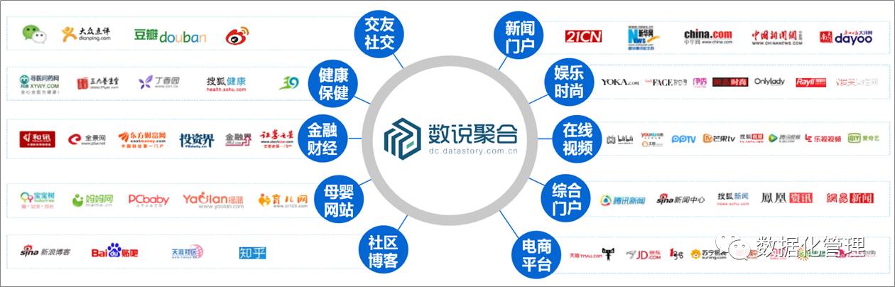 数说聚合是数说故事旗下的互联网大数据获取平台,有业内覆盖最广的互联网声量数据,新闻门户、娱乐时尚、在线视频、电商平台......监控了90%的网络声量,一句话,该有的都有了。