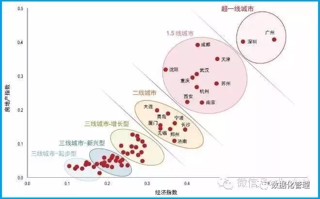 这是仲量联行发布的一个中国城市60强(不含北上广深)的排名,这个排名根据经济指数和房地产指数计算出来的。