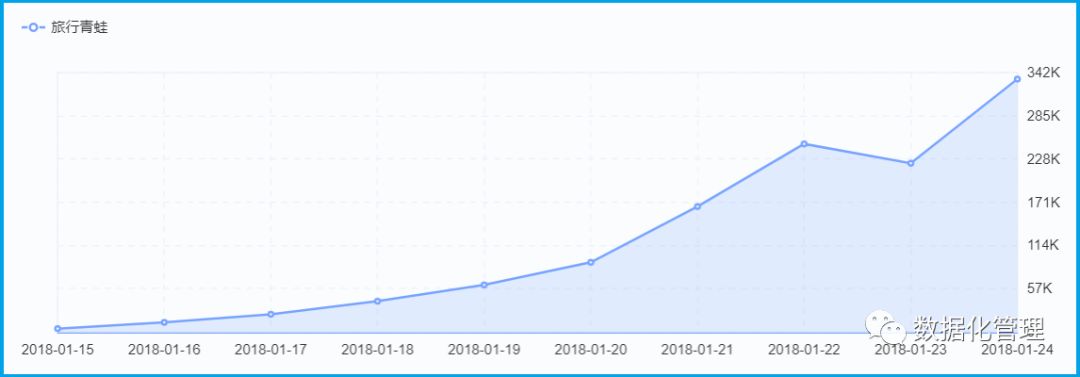 不论从微博指数还是百度指数来看,“旅行青蛙”的搜索指数在1月15日的时候就开始逐渐快速增长,至今仍未见到到顶峰,本以为在经过这几天的媒体发酵,旅行青蛙应该已经被广大群众所熟知,现在看来这款游戏的装机量依然有较大的增长空间。