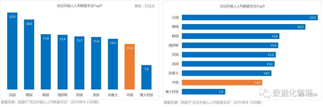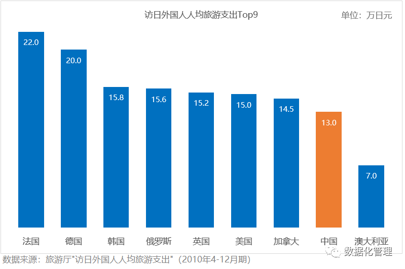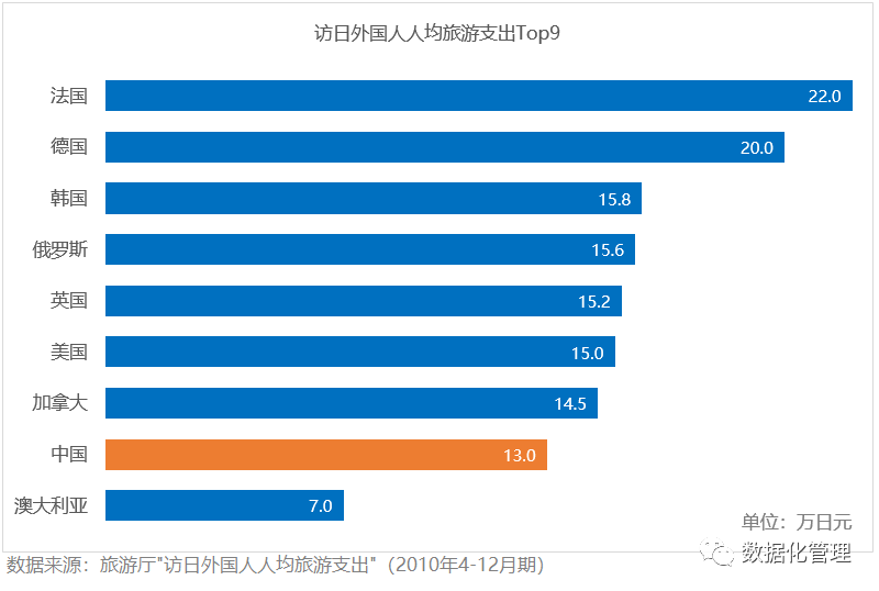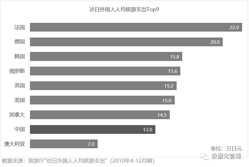 6、图片下方注释是“访日外国人人均旅游支出”,但是在下方“来日本的游客花了多少钱”。有瑕疵吧?矛盾吧?人均和总量怎么能混为一谈呢?还有“访日外国人人均旅游支出”,这九个国家是人均支出的Top9还是选的9个旅日的主要国家?图片中没有说明,受众一般会自然联想成Top9。