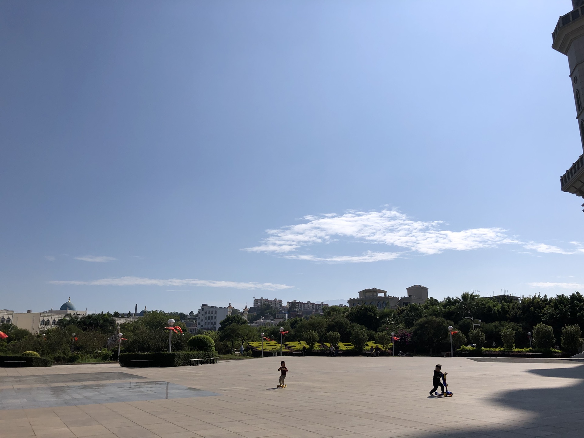 前面一个大广场,周围的建筑高度都不高,孩子们在广场上无忧无虑的玩耍着