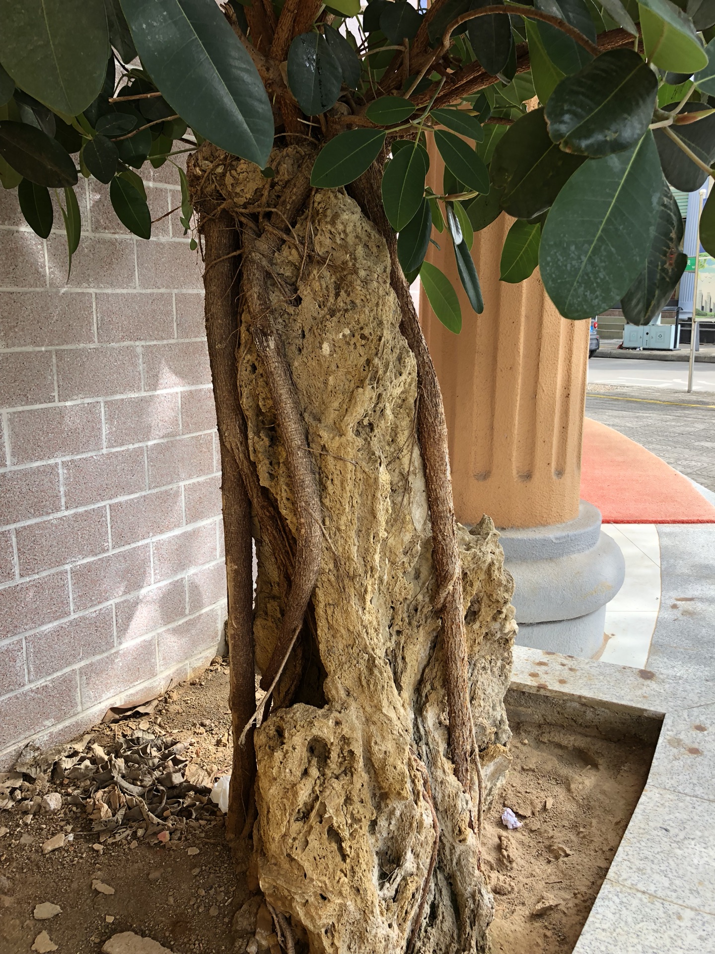 腿着就可以看到好多街景哈, 比如 这颗橡皮树,它的根系怎么就长在了石头里,枝叶还如此茂盛,生命的力量和好的气候环境