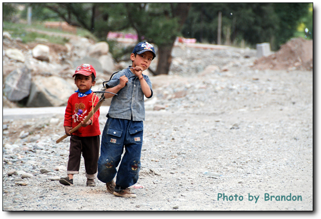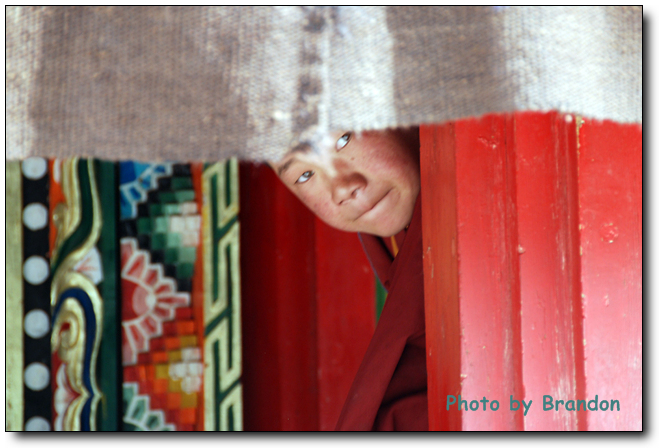 北京寺负责接待的和尚的普通话要好得多,他的父亲是个汉人。北京寺的前殿是2002年修的,装潢精致,里面的墙上挂满大幅的唐卡佛像。寺庙购买唐卡要便宜很多,一面墙大的唐卡佛像卖给他们3000元左右,要到市场上,不知要翻上几倍。新殿后面是座简陋的旧庙,据说是一八几几年盖的。两个藏民小孩嘻笑着跑过来,绕过新殿,径直走到旧庙门口,在门口台阶上磕了几个头,又跑开了。