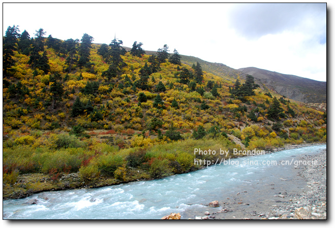接近然乌,路边山上的植被渐渐丰富起来,五色山,在这个深秋的季节点燃了山林