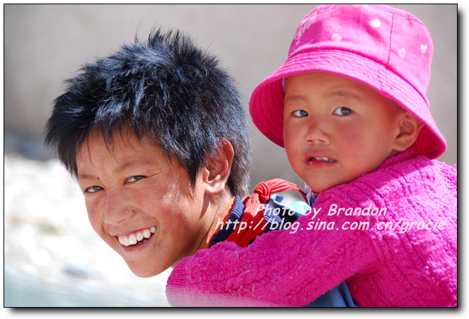 一块阅兵的一对藏族兄妹,看着我们几个张牙舞爪的外地人,笑了