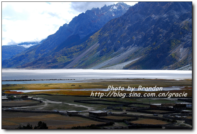 午后的阳光很足,湖水在上游变得清澈起来,虽然我不知道然乌湖的藏语是什么含义,但是,这个狭长的湖,湖边逐渐变得色彩丰富的山林,静静的湖水,远处的雪山,这一切,都让人心生宁静,尽管坐着一辆破2020摇摇晃晃,但是仿佛车子的轰鸣离我很远很远。离来古村越来越近了,那是来古冰川下冰蚀湖边的一个藏族小村落,它与世隔绝,青稞架错落散布在房子的周围,也许,这就是世外桃源吧