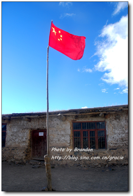 沿着孩子们走过来的路,五星红旗飘扬的地方,是这里的小学。