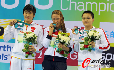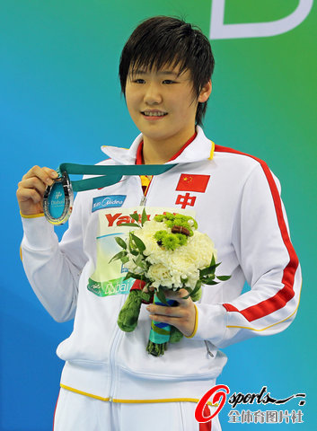 刚刚在广州亚运会上拿到金牌的叶诗文,周四又在阿联酋迪拜进行的2010年短池游泳世锦赛400米个人混合泳中拿到了亚军。站在领奖台上的时候,这个14岁的杭州小姑娘,还显得有些羞涩。