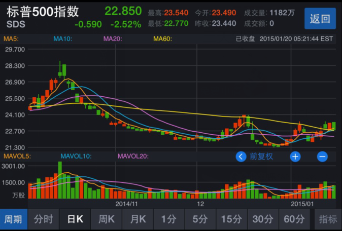 S&P500指数两倍杠杆ETF。这个ETF设计初衷是当S&P 500指数上涨1%时,其净值上涨2%,这样就为不能利用保证金进行杠杆交易的投资者提供2倍杠杆,对于日内交易者是很好的交易工具。当然,SH和SSO,就有了SDS这个两倍反向ETF,S&P 500指数下跌1%,其上涨2%。