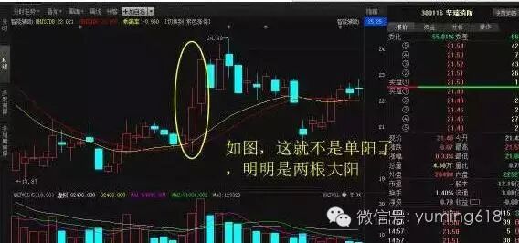 需要注意的是(1)单阳不破并非指的一定就是一根大阳,也可以是两三根连续的小阳,上涨幅度超过7%就可以的。如图: