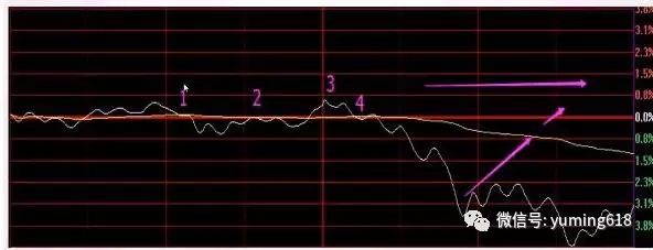 若在均线之下很远,容易出现反弹。但是反弹需要再次考验均线压力,不过还会急速跳水;若过去,有望尾盘强反。图标注的4