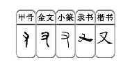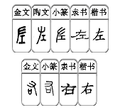 从古文字的发展来中,我们依旧可以看出,在古人的小篆字形中,明显分了左右的方向。随着书写的统一,隶书时统一使用了“”形的书写。
