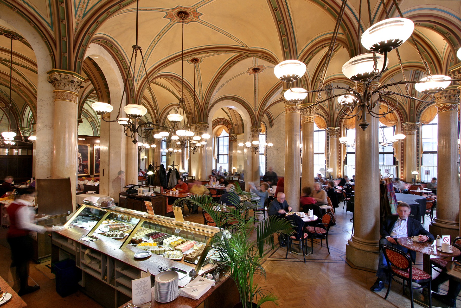 如果说音乐是维也纳人的生命源泉,那么咖啡馆就是维也纳人的生命本身。维也纳的空气中充斥着跳动的音符和咖啡的香气,这座城市几乎囊括了世界上最好的咖啡馆,大大小小共有2000多家。对于维也纳人来说,咖啡馆就是他家的客厅,他们的每一天都从咖啡馆开始,有三分之一的时间是在咖啡馆度过的。奥地利著名作家、诗人彼得·爱顿博格(Peter Altenberg)曾经说:“我不是在咖啡馆,就是在去咖啡馆的路上”。他去的咖啡馆就是1876年开业的中央咖啡馆。