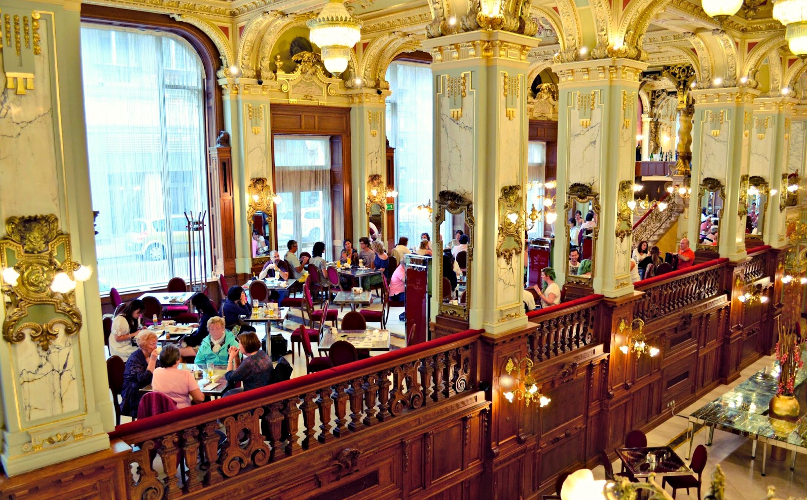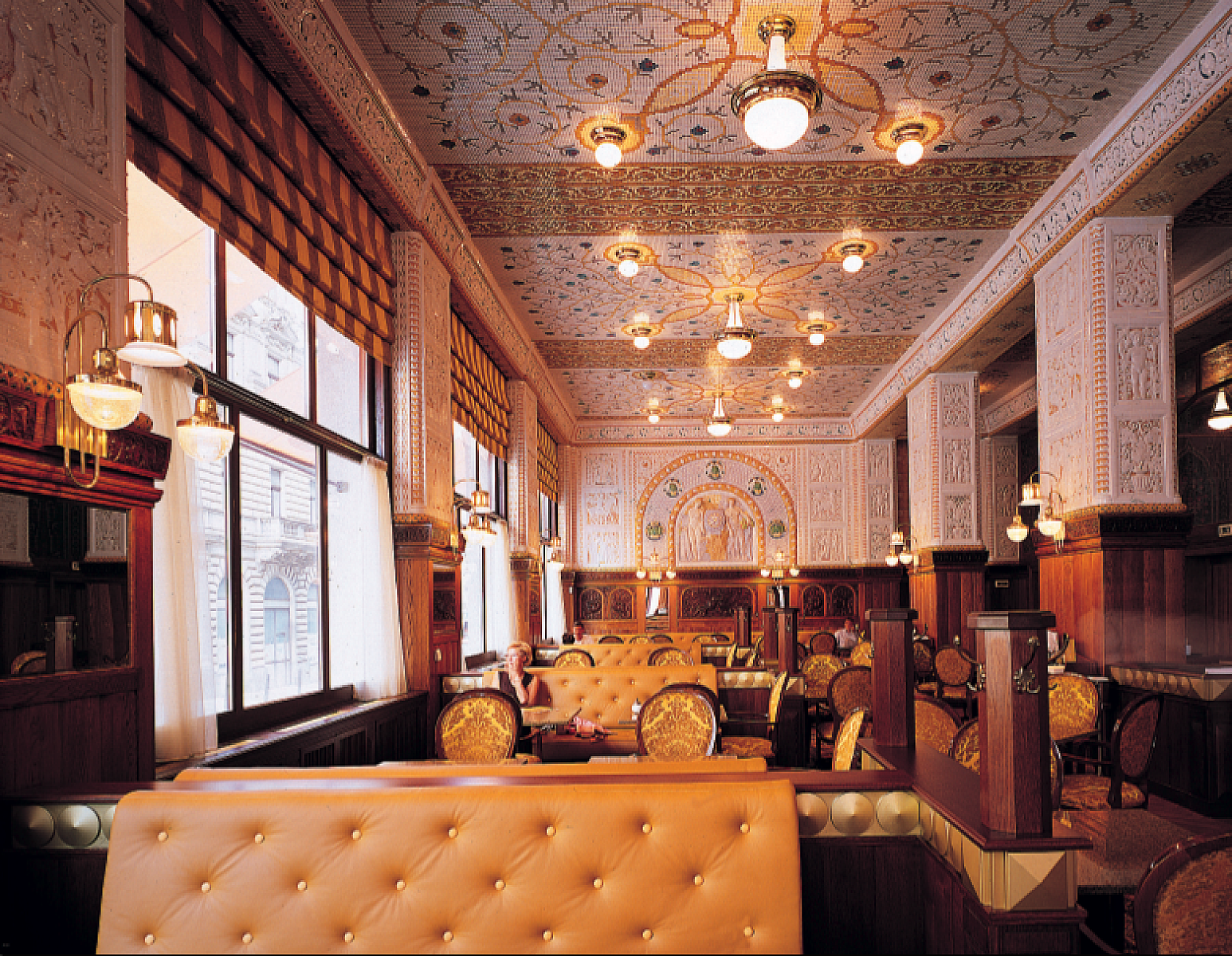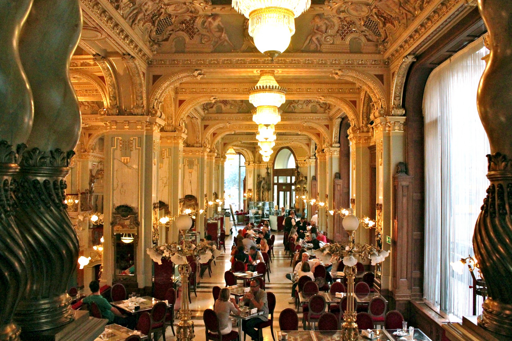 布达佩斯被称为“东欧小巴黎”,自然也就复制了巴黎的咖啡馆文化。二十世纪的匈牙利作家桑多尔·马莱(Sándor Márai)就曾经说“没有咖啡馆就没有文学”,不大的城区有超过500家咖啡馆。1894年,纽约人寿保险公司匈牙利总部投资建造了一座名为“纽约宫(New York Palace)”的大楼,10月23日位于一层的咖啡馆开业,当天老板就把钥匙扔进了多瑙河,意思是要做一家“永不关门的咖啡厅”,永远为艺术家们敞开大门。
