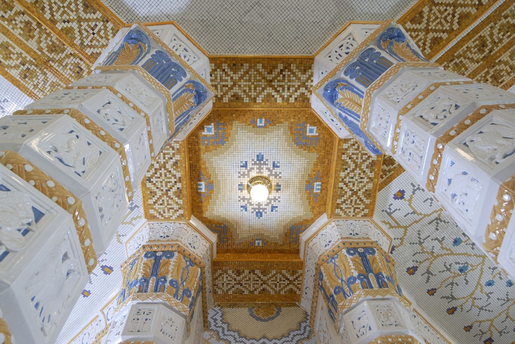 虽然外观看起来平淡无奇,但内部拥有精致的装潢,马赛克天花板令人眼花缭乱,些许的裂纹看起来更有历史的美感。