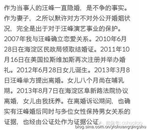 第三个,说说存在感非常弱的汪峰,这是他某一任老婆的微博: