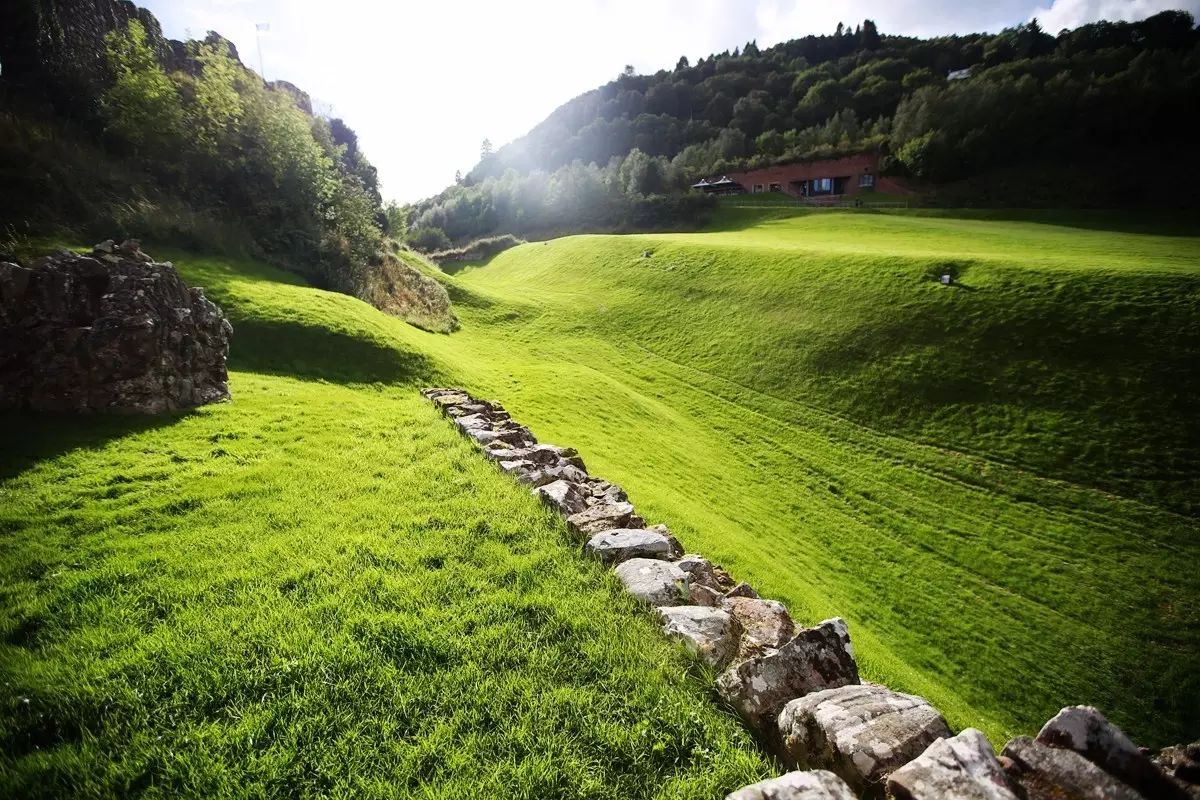 古代城墙的地基成为了草地上分割前景与远景的装饰