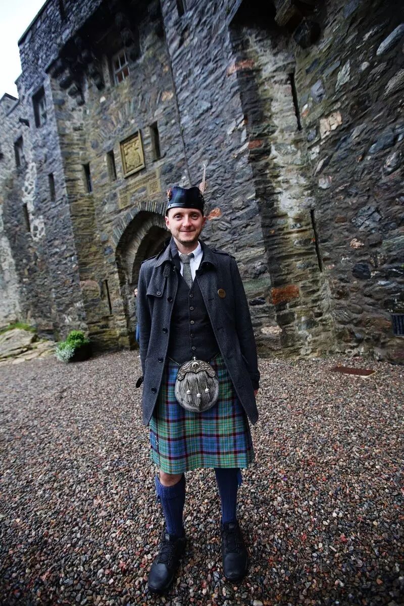 穿着传统爱尔兰格子裙的小哥