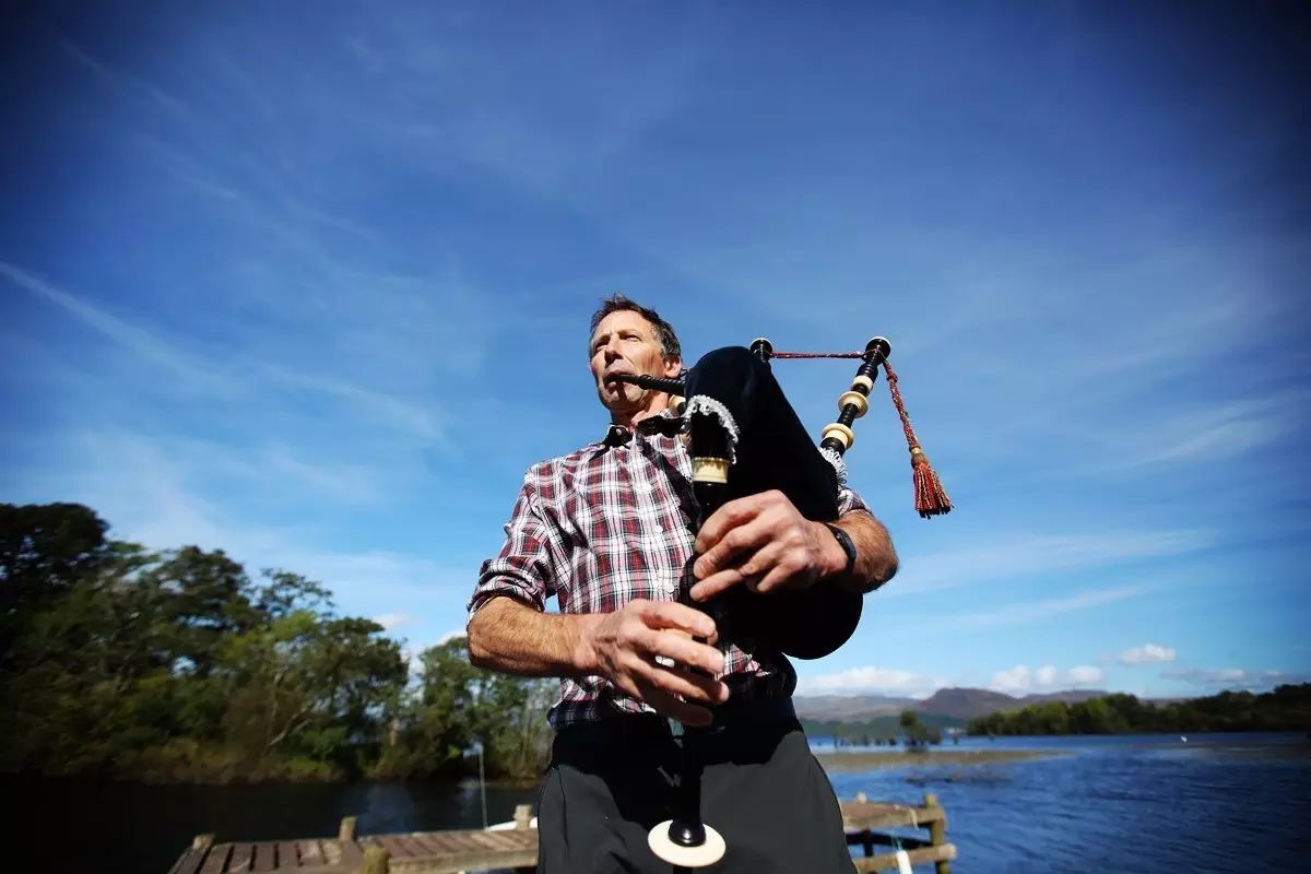 上岸时,Chris的父亲,也就是农场的第三代传人David出现了,还抱着一架苏格兰高地风笛,跟中国的唢呐有点像,婚丧嫁娶都能听到它的声音,本来还以为也跟百鸟朝凤里的唢呐一样会这门手艺的人越来越少,没想到David跟我说,恰恰相反,高地风笛甚至比他小时候还更流行。赵丽蓉老师早就说过,只有民族的,才是世界的。