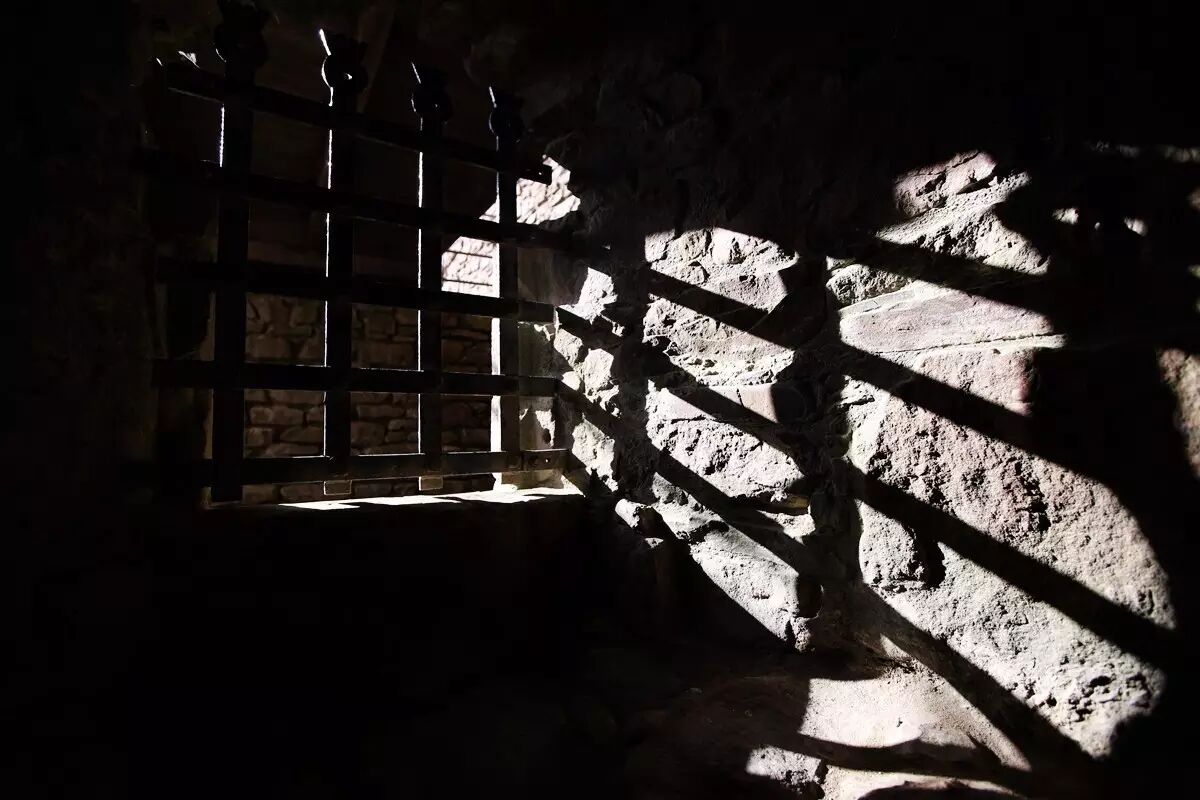 我猜这里之前是所监狱,光芒透过栅栏照进来