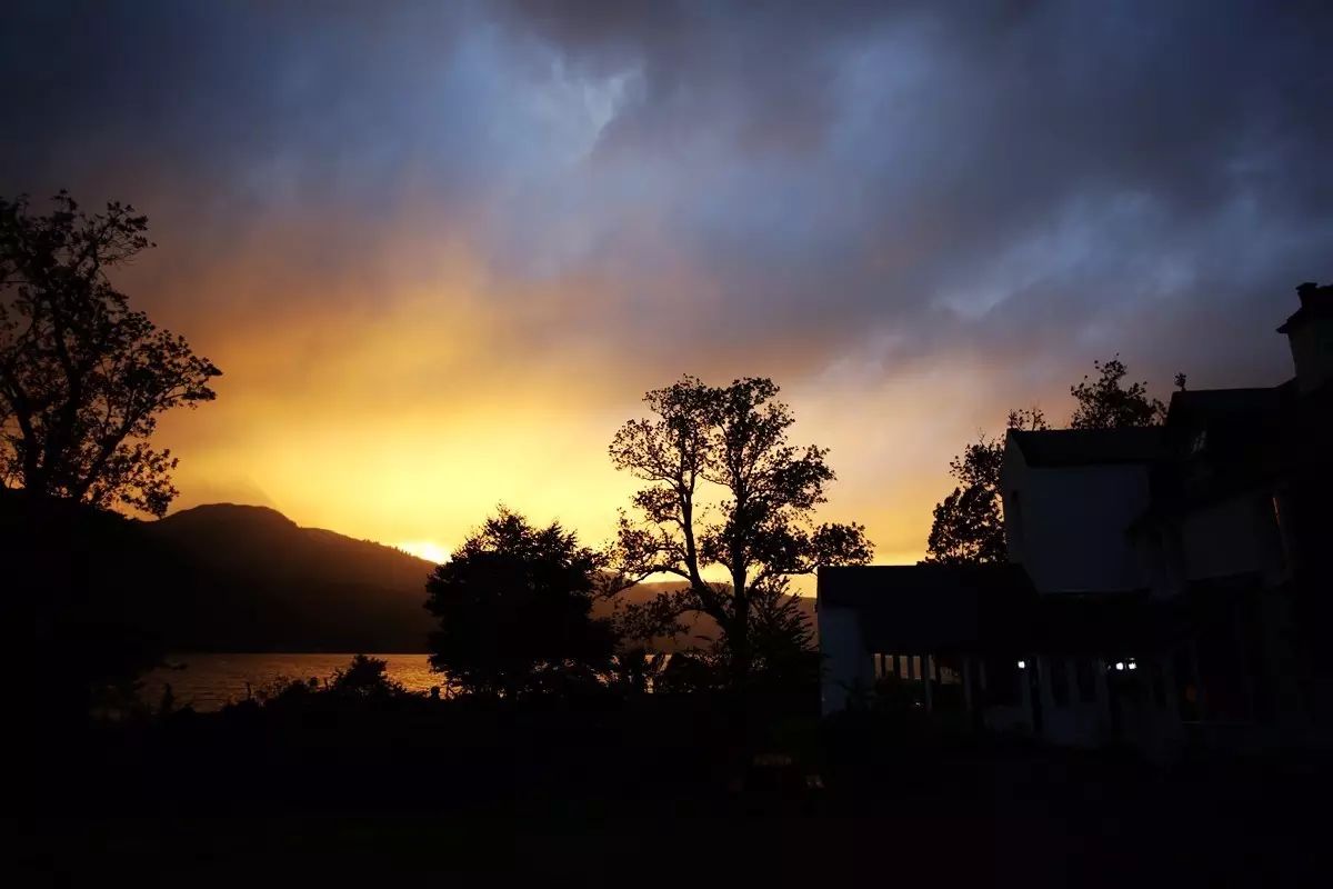 晚上回到Kintail客栈,看到外面火一样的夕阳