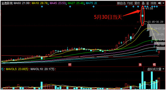 该图是金逸影视在2019年5月30日的走势,非常经典。首先,上午向上爆拉是给散户看的,散户认为该股还能继续上涨,所以一出现快速拉升就会有散户忍不住追进去,但由于主力在出货,所以冲上去的结果是很快被打下来,甚至一路跌停。