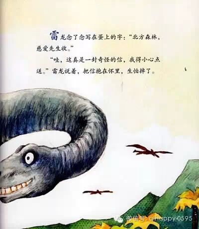 一段颇费周折的故事让人感动,一片浓浓的关爱之情让人为之动容。慈母龙妈妈以其特有的方式,体贴关爱着年老而孤单的雷龙,而雷龙也在送“信”的途中竭尽全力关爱着她的“信”。能够用心关爱别人的人,必定会得到许多幸福。——华东师范大学学前教育研究所 朱家雄教授
