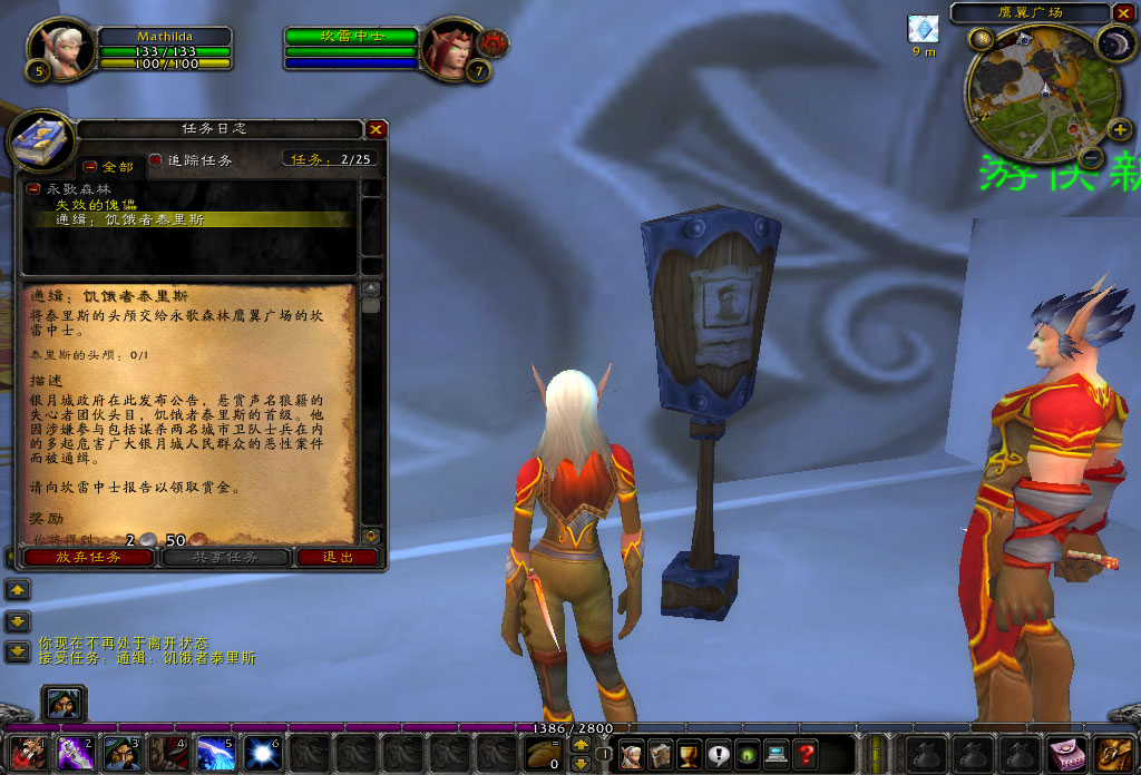 我好像没头苍蝇一样一家一家地乱闯,偶然间,我发现了她,德兰妮尔,她好像是我要找的?噢,对,那个包裹。好客的老板娘不仅奖励了我大量的经验值,还告诉我一件事,我可以把自己的炉石定在旅店里,这样下次使用时就能返回这个旅店了,这真是太好了。而且她还告诉我,当我置身于主城或是旅馆中时,我的头像会泛起黄光,这代表了我处于休息状态,一定的休息之后,再去冒险,将会获得更多的经验值,太对了!劳逸结合嘛!