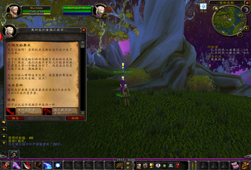 我甩了甩湿漉漉的头发,把书交给了这个叫梅雷多尔的家伙,他乐的腮帮子都快看不见了。我刚要离开,他居然想让我把书给安瑟隆送去,还让我去背这个黑锅……要不是我马上升到7级了,我才不答应你……