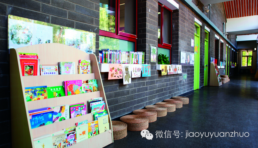 教室门口也是书,还配给孩子坐的草垫子