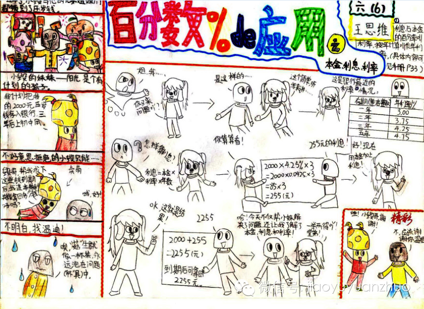 我们有个孩子刚去了清华附中上初一,这孩子以前学数学时觉得很痛苦,不喜欢,在这样的心理暗示下,她一直学不好数学。有一次老师发现,她有个特别的表现方式,喜欢用美术来表现数学,“画”数学知识……老师一直鼓励她这么做,她也坚持每天创作,后来她就以这样的方式学习数学,还创作出了数学漫画图集《小毁成长记》。
