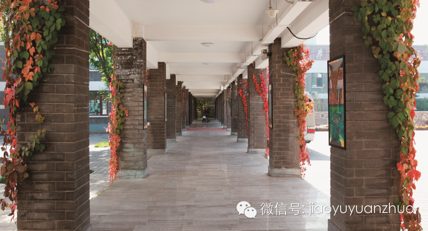 文化长廊秋色(学校恨不得所有地方都拿花草来点缀)
