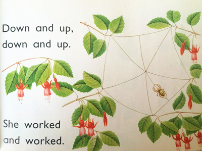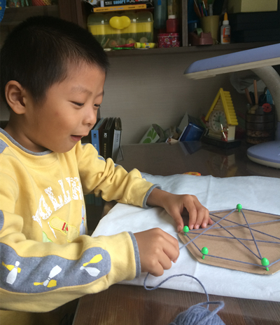 缠网时,我和牛牛不约而同地想到了读过的一本英文读物《Mrs. Spider's beautiful web》,书里的蜘蛛就是这样一上一下,一圈一圈地织网。