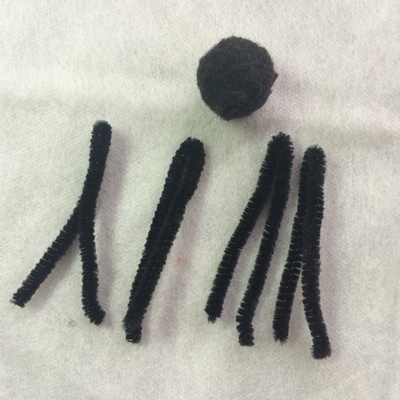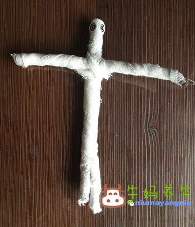 选取三根长度接近的树枝,中间用橡皮膏固定,再用毛线缠绕遮挡。(家长完成)
