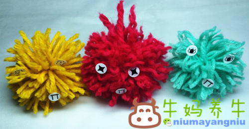整理后贴上眼睛,毛线小怪人就做好了。