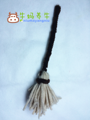 剪开毛线做成扫帚。