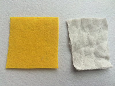 剪裁一小块正方形不织布,再准备一小块充填物。