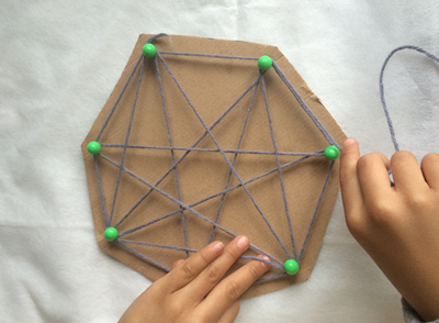 用毛线交错缠绕成网。
