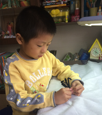 这是牛牛三岁时刚刚学会剪纸后做的。用彩纸和吸管就可以完成的立体手工。